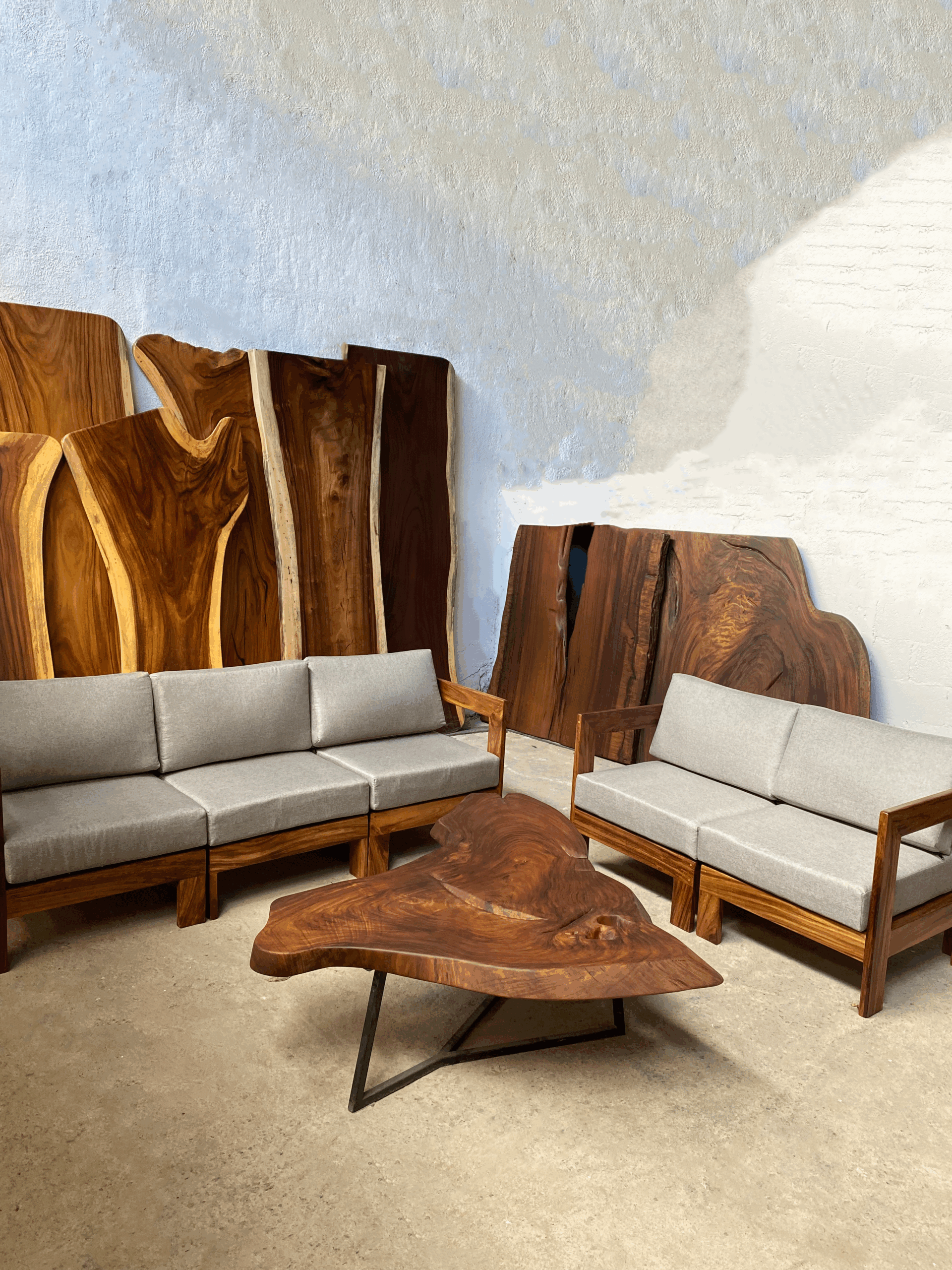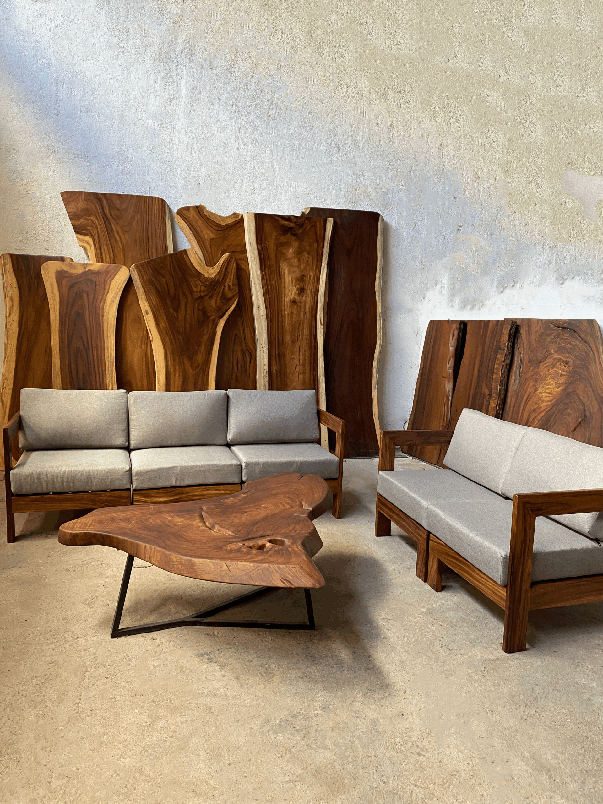 Elaborada con madera sólida cuidadosamente seleccionada para conservar su forma orgánica y textura natural.